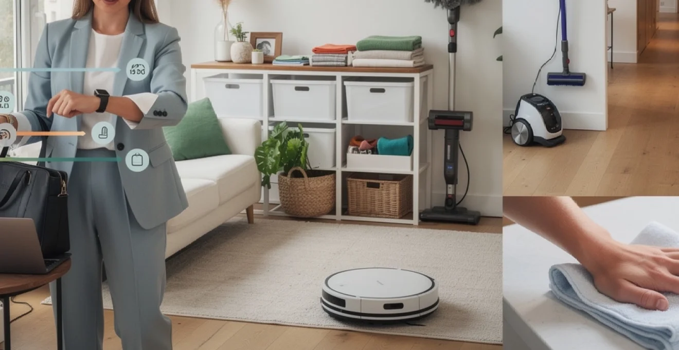 Commencez par automatiser ce qui peut l’être sans effort supplémentaire : programmez vos lessives en départ différé pour que le cycle se termine à votre retour du travail, lancez le lave-vaisselle chaque soir et videz-le le matin, planifiez votre robot aspirateur trois fois par semaine pendant vos heures de bureau. Ces automatismes deviennent la « toile de fond » de votre routine ménage : même les semaines les plus chargées, un minimum est assuré sans intervention constante de votre part. Si votre budget le permet, une intervention professionnelle toutes les deux ou trois semaines pour le nettoyage en profondeur (vitres, salle de bain, cuisine) peut vous faire gagner plusieurs heures par mois et diminuer fortement la charge mentale liée au ménage.