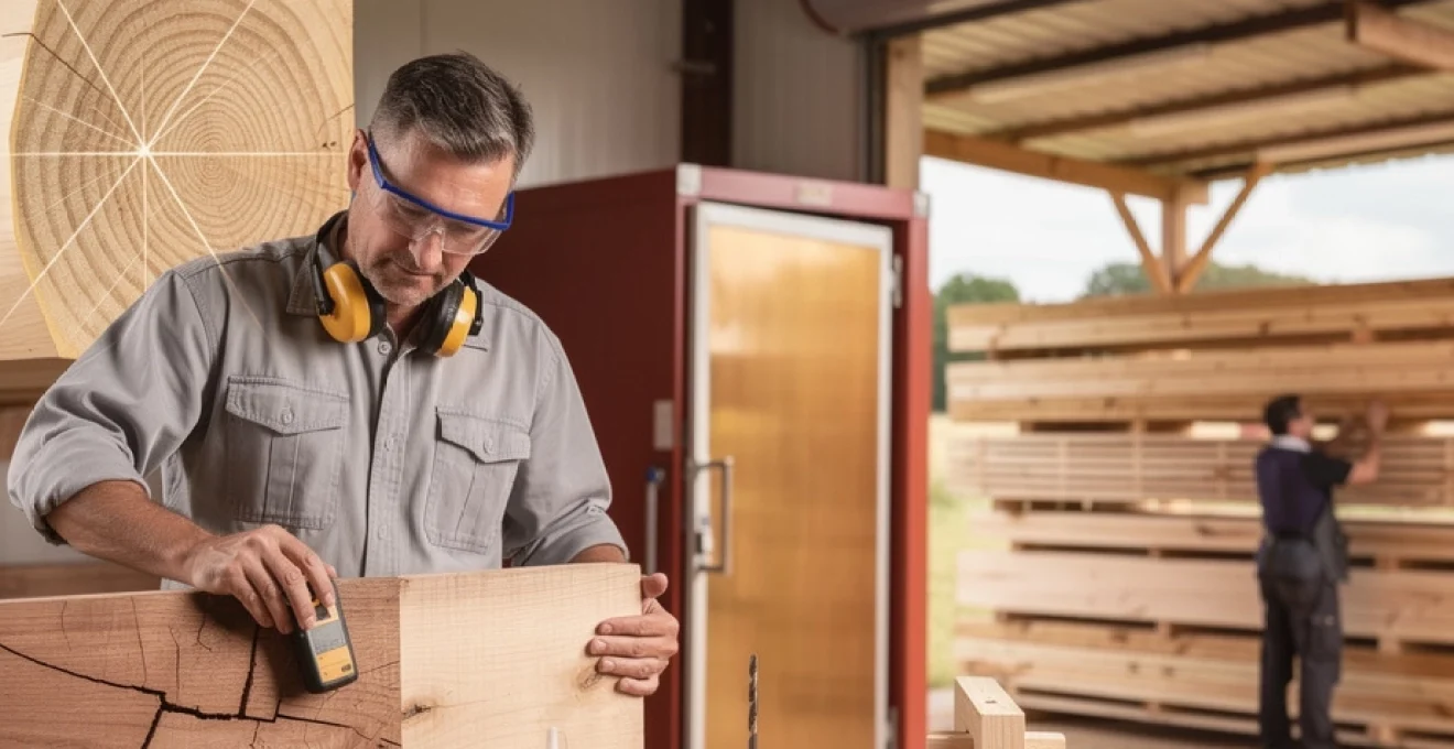 Pour limiter ces phénomènes, il est essentiel de rapprocher le taux d’humidité du bois de son futur environnement avant la mise en œuvre. En menuiserie intérieure, viser un bois entre 8 et 12% d’humidité permet une bonne stabilité dimensionnelle dans des locaux chauffés. En extérieur, sur une terrasse ou un bardage, un bois à 14–18% sera plus en phase avec l’humidité ambiante. Vous l’aurez compris : un bois trop humide ou trop sec par rapport à son environnement final est beaucoup plus susceptible de se fissurer.