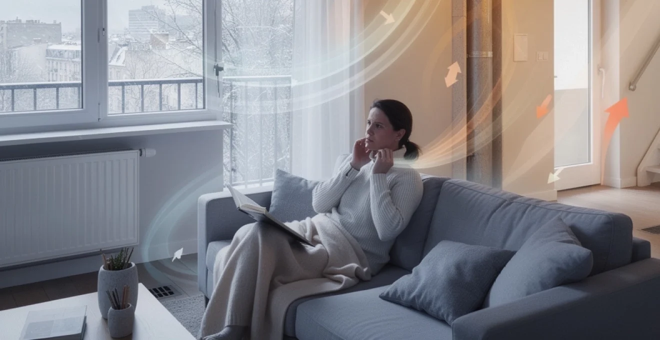 Dans les volumes importants comme les séjours ou les chambres sous combles, la stratification thermique génère des couches d’air à températures différentes. L’air le plus chaud se concentre sous le plafond tandis que l’air plus frais stagne au niveau du sol, créant une différence pouvant atteindre 3 à 5°C entre ces deux niveaux. Ces variations thermiques verticales engendrent des mouvements de convection qui peuvent être ressentis comme des courants d’air, particulièrement sensibles au niveau des chevilles et des pieds.