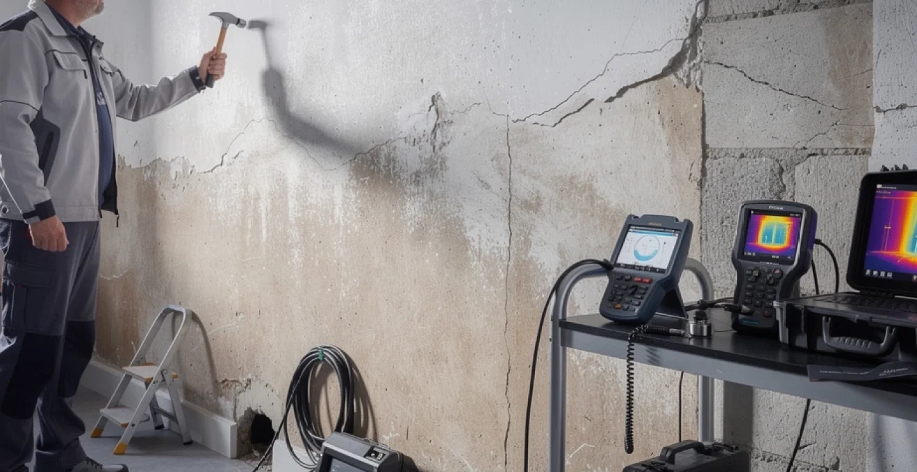 Lorsque vous tapez sur un mur et entendez un son creux accompagné de traces d’humidité, cette combinaison de symptômes peut révéler des désordres structurels significatifs. Cette résonance particulière indique souvent un décollement des revêtements ou des vides dans la maçonnerie, problèmes fréquemment associés à des infiltrations hydriques. L’expertise technique moderne offre des méthodes de diagnostic précises pour évaluer ces pathologies. Une détection précoce permet d’éviter des dégradations majeures et des coûts de réparation exponentiels. Les professionnels du bâtiment utilisent désormais des instruments sophistiqués pour analyser ces phénomènes acoustiques et hygrométriques.